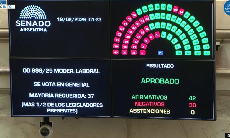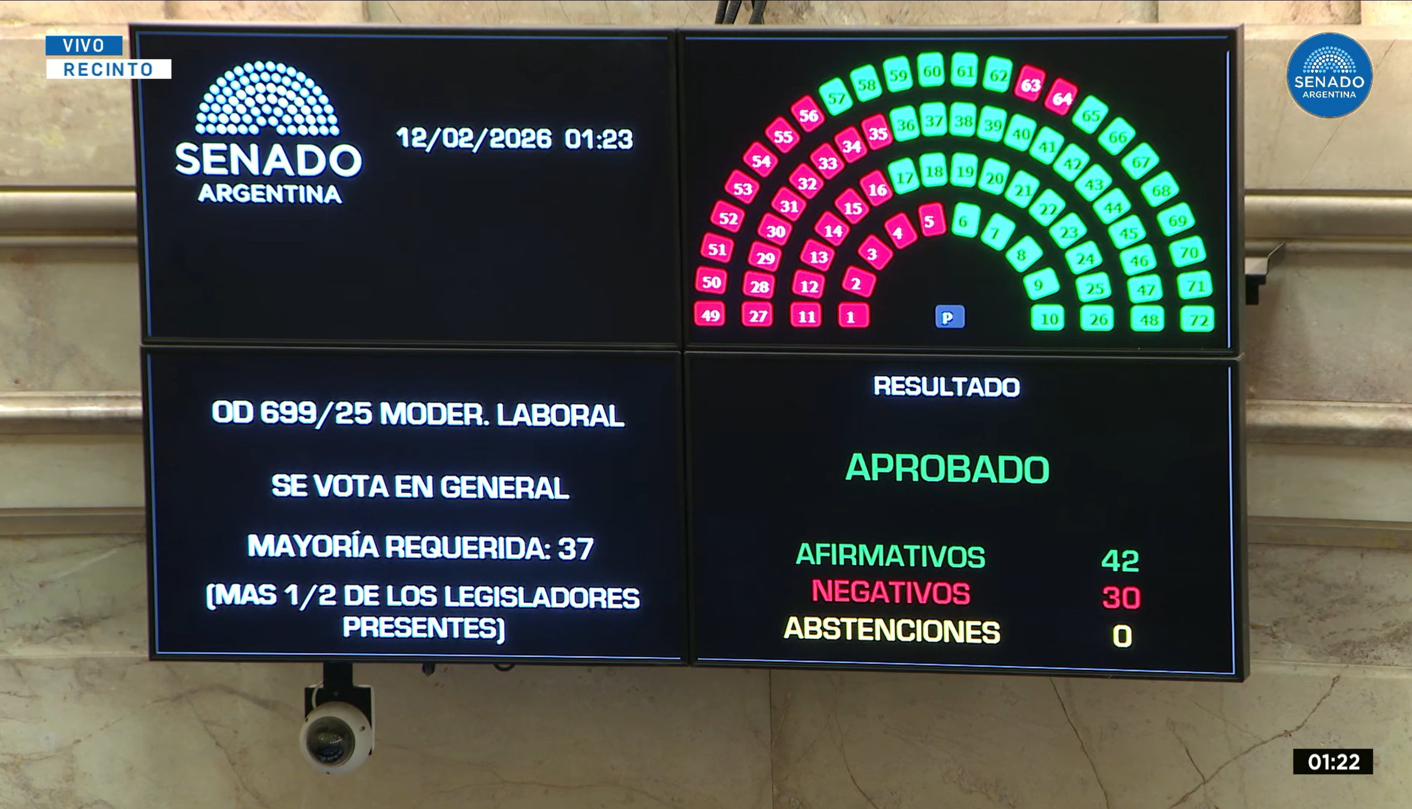 El proyecto de reforma laboral impulsado por el gobierno y sus aliados obtuvo 42 votos a favor. Y 30 rechazos.